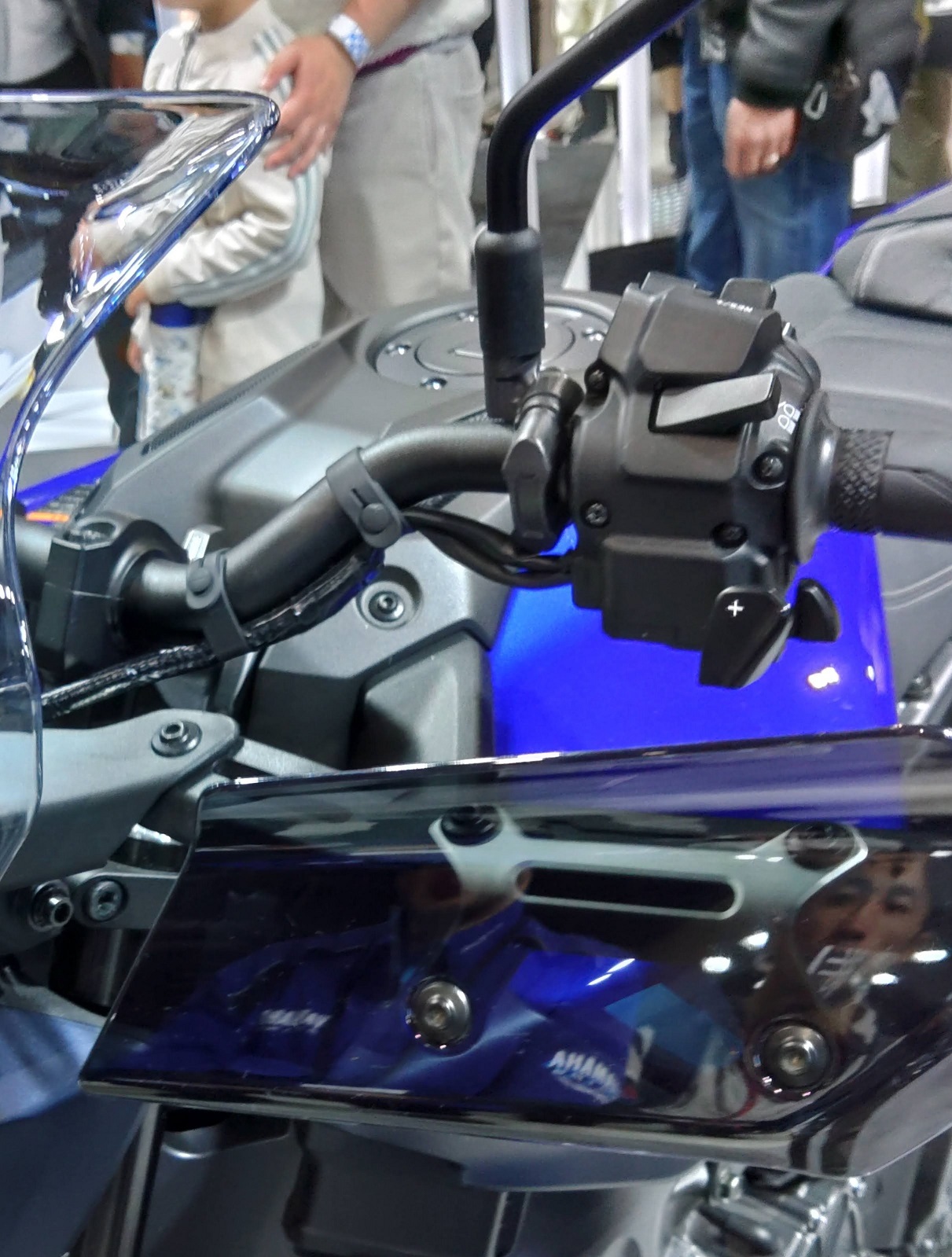 着いて最初は入口近くのYAMAHAブースでMT-09 Y-AMT仕様にまたがりました。