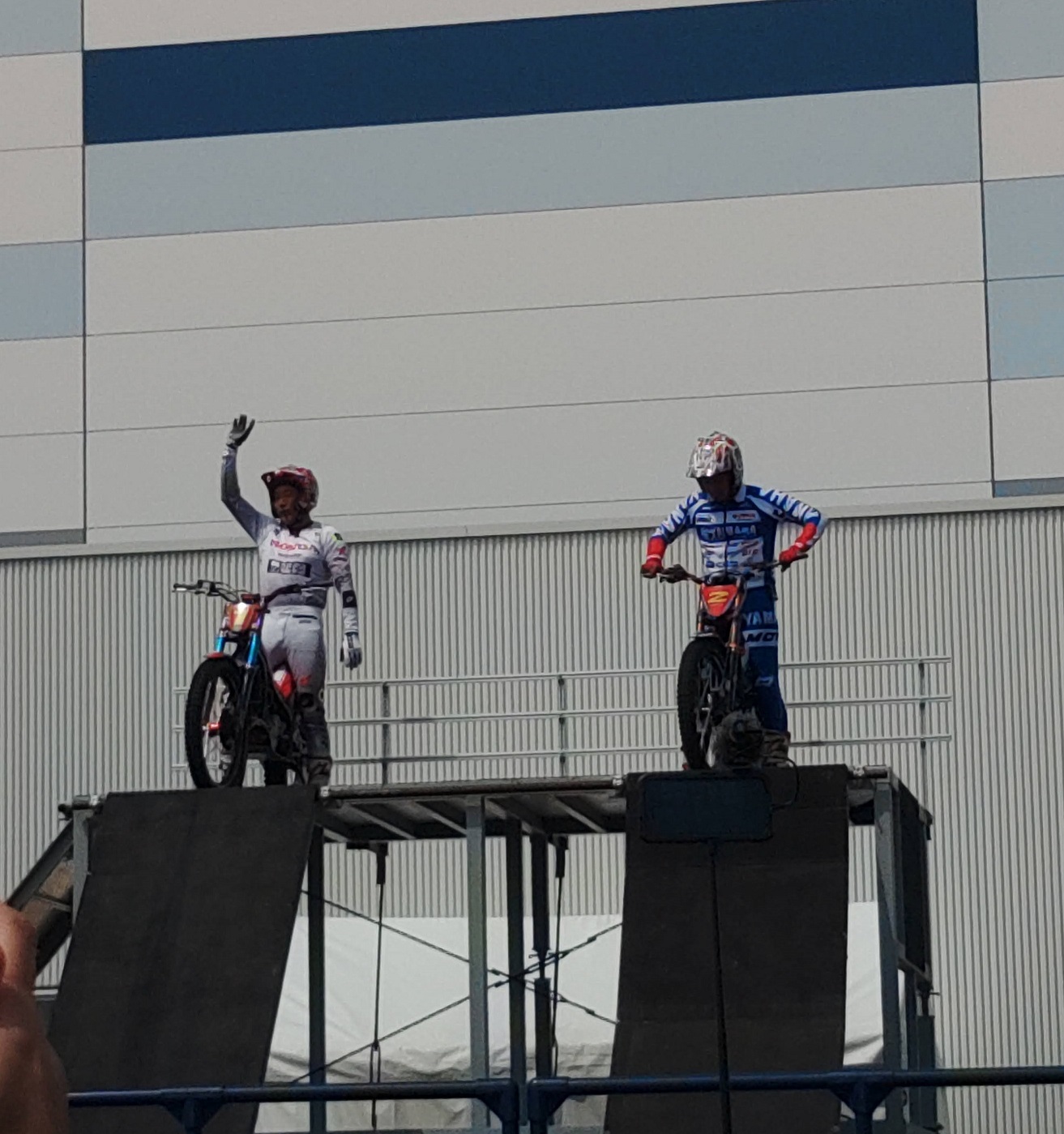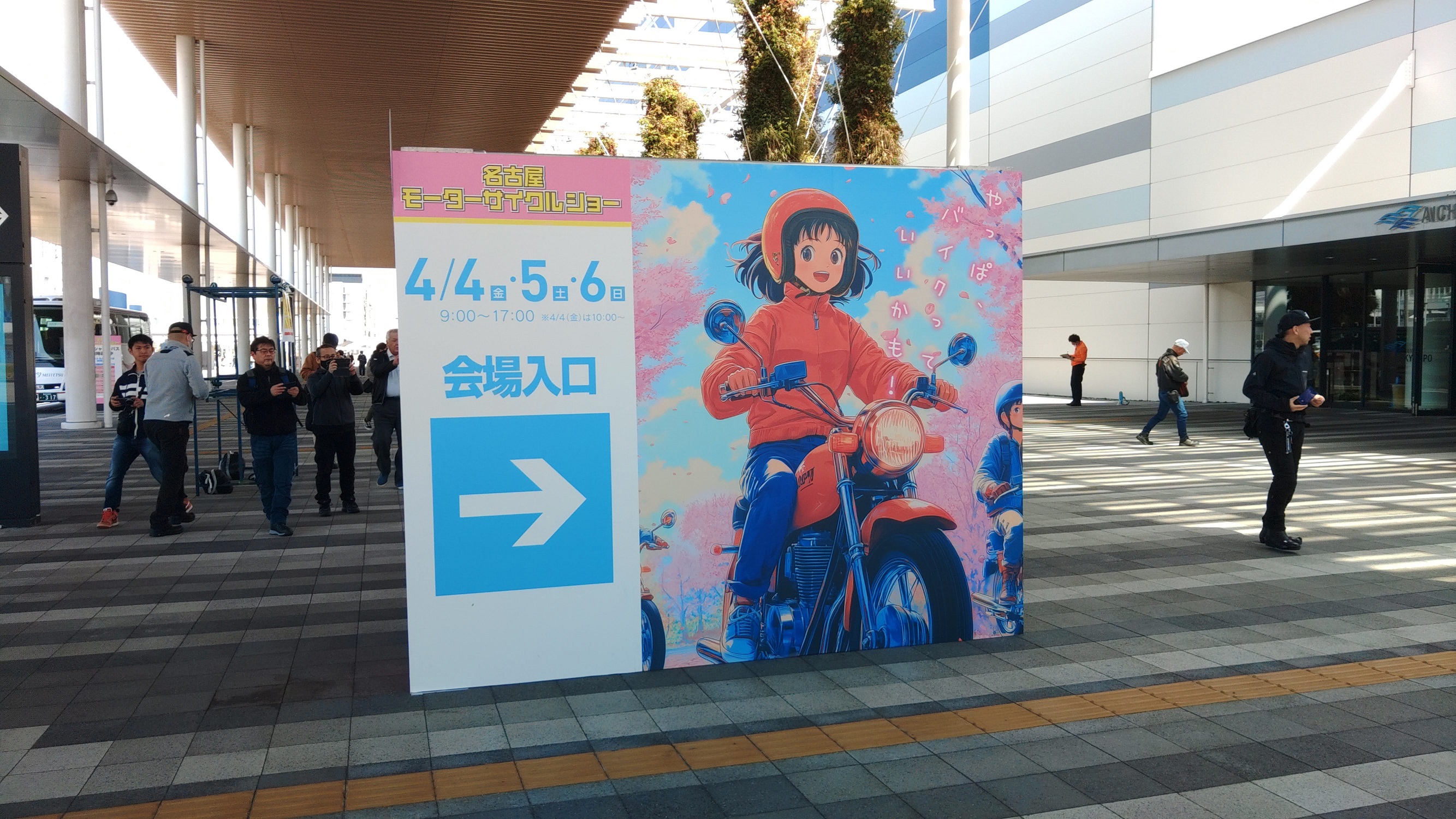 その後、ホンダブースにも行きましたが、WithMeの丸山さんのトークショーで人だかりになっていてCB1000Fの撮影ができず(CBが乗った舞台でのトークショーでした)、先にトライアルデモを見に屋外へ。