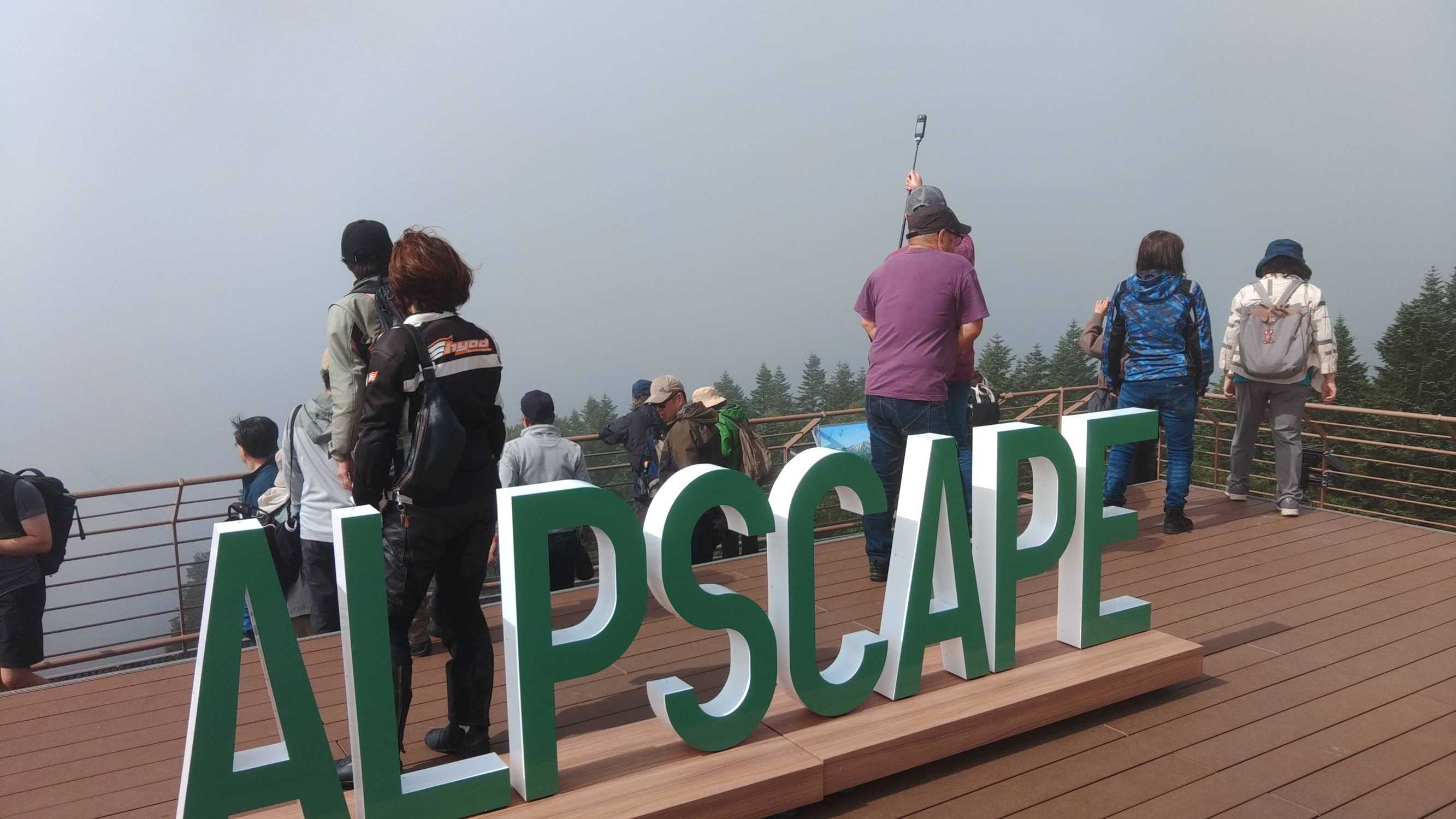 その後、新穂高ロープウェイに向かい2階建てのロープウェイで西穂高岳に登りましたが、真っ白でした。