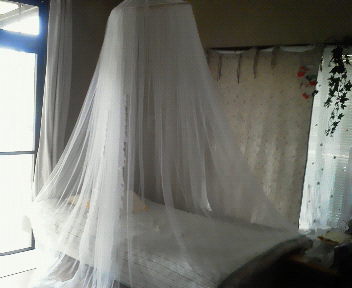 私は、1日の大半を部屋にしつらえた蚊帳の中で過ごしています。m(__)m