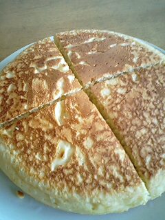 なんとなく忙しくて久々の更新。あまりに素朴で美味しくて、3日連続で作ったおやつ。自家製のホットケーキです。材料は小麦粉と砂糖・BP・卵・牛乳(豆乳)だけ!こんなに厚みのあるホットケーキはなかなかのインパクト。今度ママ友のお茶会に作ろうっと。材料ドルチェ150gきび砂糖30g(大さじ2)アルミフリーのBP6g(小さじ1)卵1個+牛乳=160gバター適量ボウルに粉類を入れ泡だて器で空気を含ませるようにグルグルと混ぜる。卵と牛乳を加えさっくり混ぜる。小さめのフライパン(うちのは直径20cm)にバターを溶かしホットケーキの生地をすべて流し入れる。フタをして弱火で焼く。きれいな焼き色が付いたらひっくり返す。中まで火が通ったら完成!☆ものすごい厚みが出るので、中まで火が通らなかったらレンジで少しチンすれば大丈夫! フライパンはテフロン加工のもので。 もちろんそのままでもふわふわもちもち美味しいですが、やはりバターとメープルシロップをかけて・・・国産小麦100%使用の薄力粉![チャック袋]江別製粉 国産菓子用小麦粉 ドルチェ <薄力粉タイ...価格:809円(税込、送料別)シタデール 100%ピュアメープルシロップ250g 05P12nov10価格:890円(税込、送料別)