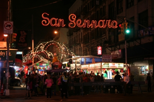 先日、サンジェーンナーロ祭に行ってきました。そのときに写した写真です。毎年、ニューヨークのイタリア系移民の街、リトルイタリーで開催されます。9月19日を前後にして2週間位続く、大きなお祭りです。リトルイタリーの道路は歩行者天国になり、その両脇に、いろんな食べ物や飲み物、お土産や催しなどの屋台が並びます。出店ですね。日本のお祭りの出店と似ています。このお祭りは、リトルイタリーでは1年で一番の盛り上がりで、多くの人々や観光客でごった返します。期間中に100万人は訪れるそうですよ☆サンジェンナーロは、聖ジェンナーロ (San Gennaro) というキリスト教の聖人です。ナポリの守護聖人だそうです。サンジェンナーロが祀られているリトルイタリーの小さな教会があって、そこにもお参りしてきました。毎年、なんとなく、この時期にたまたまリトルイタリーに通りがかっているので、このお祭りにもよく遭遇しています。とても華やかでガヤガヤしていて楽しかったです☆