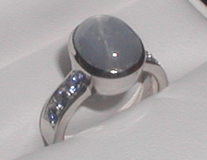 ダイヤモンドも並べてみたのですが、このスターサファイアを引き立てるには、このライトブルーサファイアが一番ピッタリ似合っていると思います☆