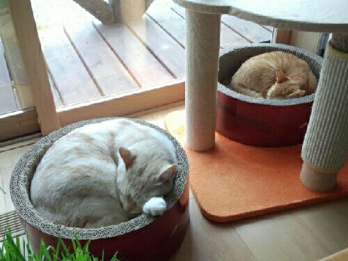 おはようございます 少々、更新も訪問も、ご無沙汰をしてました。 10月に入って時間的にはゆるくなったのに… なったから…?何もしたくない症候群。←勝手に命名(笑) ようやく、新調したテレビに合わせてテレビ台を買い、ベッドも買いました。 申請してた住まいの復興給付金が出たので(*´∀`*) じゃなきゃ無理(爆) 次は省エネ住宅給付金がもらえたら家具買います(笑) ここら辺では、8月(仏の月)、9月(苦がつく)は新築、引っ越しの祝い事は控える風習が残ってて、10月になったらお祝いにきてくれる友人とかポロリポロリ。 急に冷え込みがきつくなり「寒い」と感じるようになり慌てて来客対応にカーペットを敷きました。 猫らの「寒いよ」視線にも負けました。 電気カーペットじゃないですけどね(笑) いま、コタツにするか、座卓×電気カーペットにするか迷い中。 狭い仮設はエアコン一つですぐに温まったけど仮設よりかは広くなった現在、寒い、寒いを連発してます。 陽がさせば温かいけど朝晩はスッゴく冷える… いろいろ対策も思案中。 10月半ばまでにはモッコウバラを地植えにしようと思っていたのに、風当たりがすごくて… これまた対策を考えてラティス?アーチ?オベリスク?と迷い中。 寒さがキツくなる前にやらなきゃないことは山積みなんだけど…やりたくない(笑) 三つ目の桶置いて、私も丸くなってたいよ~(笑´∀`) あ、そうそう!ひさびさに金魚の水槽の水換えしたので大キンちゃん、小キンちゃんを計測してみました! また育ってました(笑´∀`) 跳ねて餌の催促をされるのですが… 怖いです。迫力あり過ぎで。 こやつらも負けてはないですけどね(;´д⊂) うるさ過ぎてかないません! とくに…ルナは。(;´д⊂) 室内の植木鉢の土をほっくりほっくりしてくれて… 毎日毎日、掃除機かけからスタートです…。 今朝も例外ではなかったし… よい子の部分も多々ありますが、まだ訳わからん子の方が勝ってて手を焼いてます。 問題児だったムーンが、とってもとってもよい子に思えるこの頃になりました(笑)