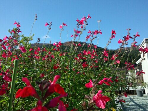 こんにちわ 天気良いのですが風が出て来ました。 また、花が散っちゃうな~ チェリーセイジ。仮設住宅の駐車場に植えたのが今春。 引っ越しのときに掘りあげて持ってくるとき半分以上、枝折れしたのに… 逞しい! 初夏から咲いていまだに咲いてくれてます~♪ 花が終わったら切り戻そうと思ってるのに…終わらない!(笑) 濃ピンク色も元気をくれます♪ 先月、仮設住宅で花友だった人が自分がよそで見て、すんごくキレイだったから買ってきたののお裾分けってアメジストセイジを一株もってきてくれました~♪ 大きくなるからって言われたので大きな鉢に植えました。 支柱してるのは花びらがヴェルヴェットみたいで雨に当たると重くなって曲がってしまうから。 大株に育ったら見応えありそうですよね! そして新居に越した時にご祈祷してもらった時に神職さんがお供えしてくださった榊! 五本のうちの一本がずっと枯れずに、新芽が伸びてるくらい元気で、ずっと残してたのですが思い切って挿し木してみました。 発根促進剤をつけてザクッと挿しました。 5ヶ月くらい元気な榊のパワーに掛けました。 うまく根付いてほしいなぁ~ 樹木は植えないかなと思っているのですが、山茶花欲しい(笑) ドウダン欲しい、ライラックの白欲しい、木瓜欲しい、マルメロ欲しい(笑) ハナミズキも欲しい~(笑) しかし、通院終わったけど肩は前ほど動かせない… 管理を考えたら… ふぅ~(´・ω・`)厳しいね~ 大きくならない樹木で悩もうと思います(笑)