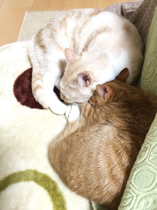 無理矢理… ぎゅうぎゅうもいいところ(笑) こんばんは〜 昨日、ようやくコタツが届きまして、今日は2人と2匹はコタツの温かさを堪能いたしました(笑) 温まり過ぎたムーンが丸型の爪とぎに収まると 温まり過ぎたルナがお兄ちゃん〜と無理矢理収まりに行く(笑) ムーンもワケわからん子でしたがルナも負けてないワケわからん子です(笑) 四角いスーパーボール?がいたくお気に入りのルナ。 遊んであげるから投げなさいと持ってくるようになりました_| ̄|○ まだ抜糸してないんだから、静かにしようよと言っても… 聞く耳持たず(笑) 早くっ! 目は口ほどにものを言う _| ̄|○ ムーンが持て余してゔーゔー言うのが少しわかった本日でした(笑)