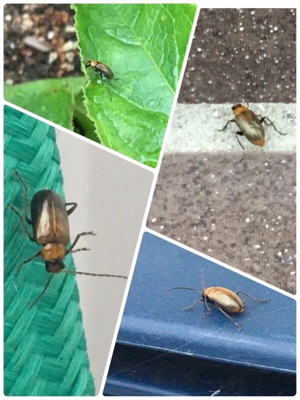 *虫の画像がありますので虫NGの方はスルーしてね* こんばんは〜(*゚▽゚*) 毎年、虫に振り回されるこの季節。 昨年はナメクジ、カタツムリ、ダンゴムシ、ヤスデが尋常じゃないほどだった。 今年はナメクジ、カタツムリはまだ見てない✌️ ダンゴムシ、ヤスデの対策は早めに誘引殺虫剤を撒いて行ってたから昨年に比べたら少ない少ない。 チョウバエも恐ろしいほど発生した日もあったなぁ〜 だから昨年、悩まされた虫対策は結構してた。 で、油断してた‼︎ 柘植の花に忙しく舞う熊ん蜂に紛れて気づかなかった。 ふと目に入った甲虫。 1センチほどの小さな甲虫。 見つけた日はあまり気にしなかった。 2日くらいしてアスターの葉っぱが変だなと気づき、アブラムシかしら?とオルトランを撒いた。 また2日くらいして見たら、ますます葉っぱがへんになってました💦 よーーーーーく観察してみたら、数日前にみた甲虫が、うじゃうじゃーーーーーーーっ‼︎ ひぃーーーーーーっ💦💦💦 すぐネットで調べてみたら、どうやらウリハムシらしいとわかりました。 ウリ科の植物に付きやすいとあったけど、我が家はキュウリだけじゃなくニンジンの葉っぱ、アスターの葉っぱ、プリムラの葉っぱからラベンダーにも。 とにかく大量過ぎて色んなところにとまってます💦 外に置いてあるゴミ箱、玄関扉、玄関前のタイル、抑えにつかってる紐にも、窓枠にも、ウッドデッキにも。 コンクリもいっぱい歩いてるから車にひかれたアトもいっぱい。 もうヤダーーーっ💦💦💦 はじめは野菜用のベニカのスプレーを撒いてみたけど、量が多いし飛んでしまうから効果が少なかった。 次にネットでみた捕殺作戦。 ペットボトルで捕虫器作成。 いっぱいいるけど飛んでしまって場所変えるから、これまたイマイチ。そして結構大変(@_@) キラキラしてるテープを張ると良いとネットに出てたし、ネギの匂いを嫌うってもあったから、園芸店にキラキラテープを探しに、あとは乾燥ネギをスーパーで買って撒くか?と考えながら出動(笑) 園芸店に行ってみたら、な、なんと! ウリハムシ用の殺虫剤があった‼︎ なんでも今年は大量に発生してるとこが多いらしいです。 そして、ウリハムシ用の殺虫剤、今年登場したそう‼︎ グッドタイミング👍 トレボン粉剤DL。 粉剤だから薄く撒くのに百均でふりかけ用のプラスチックボトルを買いました。 塩コショーの入れ物捨てるんじゃなかったと後悔しながら(笑) キュウリの葉っぱ、真っ白(T ^ T) 結実してもみんなヤラレちゃってるから仕方ない。 初収穫、一本。 キュウリの肌の悪いこと悪いこと。 写真じゃ分かりづらいけど、風で倒れたひがいだけではなかったのが、今はわかります( i _ i ) ウリハムシとの戦い、どれくらいで終わるかなぁ〜 はぁ〜 ウリハムシの幼虫は土の中でオイタをするらしいのでニンジンが心配です( i _ i ) 昨日、込んできたニンジンを間引いてる時も、ウリハムシ、ウリハムシ、ウリハムシ〜が目につく目につく。 まだまだ細く小さいけど一丁前にニンジンになってる。 これはウリハムシになんか負けられなーーーいっ‼︎ 頑張ろ!