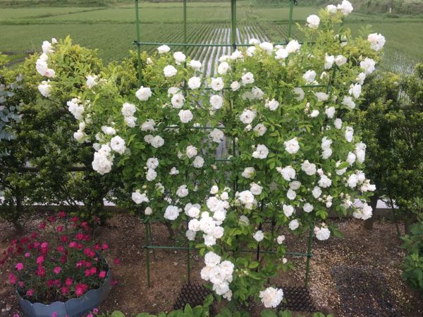 こんにちは〜(*゚▽゚*) もうですね、白バラに浮かれまくって〼 来年まで後ろのトレリス取り替えよーと。 ちっちに似合うやつ探さなくちゃ‼︎ 他の子達も🎶 今が最高にキレイな時季🎶