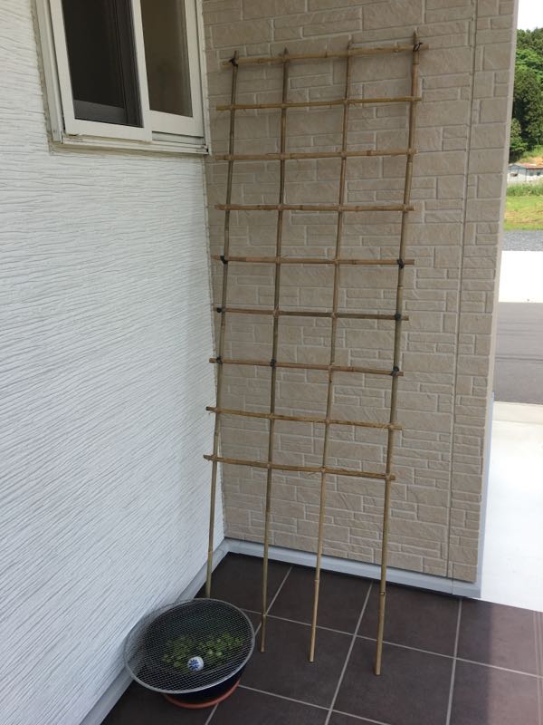 こんばんは(^o^) 今日は朝から雨かと思っていましたが、昼頃パラパラ降ってすぐに止んで曇天のままでした。 ラッキー! 台風が来る前にと木曜日あたりからバタバタしてました。 竹で格子組みました。 何故なら、玉ねぎが倒れ始めたので台風の影響で雨が降っちゃったら収穫伸びてしまう💦と思って。 慌てて収穫して、ささっと風に当ててから吊るしました! 我が家で軒下が深いのが玄関脇なのですが吊るすところがないのでこんな干し方に。 全部で37個でした。 実家の母に少しおすそ分けして、我が家でも収穫すぐの新玉ねぎを食し 干したのは30個。 格子の内側に吊るしたのは落下したらメダカ鉢にヒットしちゃいそうなので(笑) で、吊るし終わって気づいたんです、途中経過を全然写してなかったって。 いやはや(;´Д`A これは1週間くらい前の状態です。 そして植えたのにアップしてなかったのが… 落花生植えてみました! 接木のキュウリ苗2本も植えました。 やたらと支柱とかワイヤーが多いのは、ほっくりに燃えるムーン避けです(笑) それから、 イチゴは3回くらい収穫しました。イチゴカップだったら2カップ分くらい採れました♪ でも酸っぱかった💦 なので冷凍してました。数がたまったらジャムにします! 三つ葉と明日葉周辺をパトロールするムーン。 そう、パトロール、パトロール、、、のはず(笑) それから、これ 玉ねぎを植えていた辺りに生えて来てました。 これってトマトっぽいでしょうか? トマトだったら抜いたらもったいないので念のため鉢に植え替えました。 雑草かなぁ〜?トマトかなぁ〜? もう少し様子見てみます!