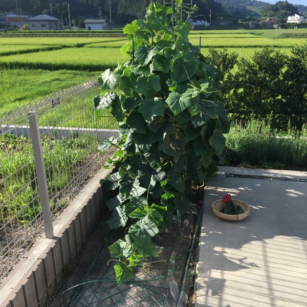 おはようございますヽ(*´∀`)ノ 毎日、毎日、暑いですね💦 ジリジリの陽射しと熱風で外に出たくありません! この暑さで元気なのはキュウリとニャンズだけ。 繁り過ぎて横に這い出したキュウリ。 支柱増設の気力無く地面に這わせっぱなし(笑) ちょうどムーンの砂かき防止にネット敷いてた野菜スペースなのでネットあるから、まっ、いっかーなんて(笑) 這い出した葉っぱをめくってみると知らないうちに実が大きくなってたし!(笑) 7月1日から1ヶ月で103本収穫しました! アマ殿、キュウリの茂った葉っぱの日陰でよく見ます。 アマ殿のおかげでしょうか? キュウリにつく害虫はほとんど見ていません! そしてニャンズは 西日の当たる窓辺でまったり… 暑くないんかーーーい⁈ ライトは暑がりなんで別行動。 あ、もう一つ元気なのは夾竹桃! 涼やかな花に癒されます♪ 写真は写しててアップしてないので、次は早めに頑張ります!(笑)