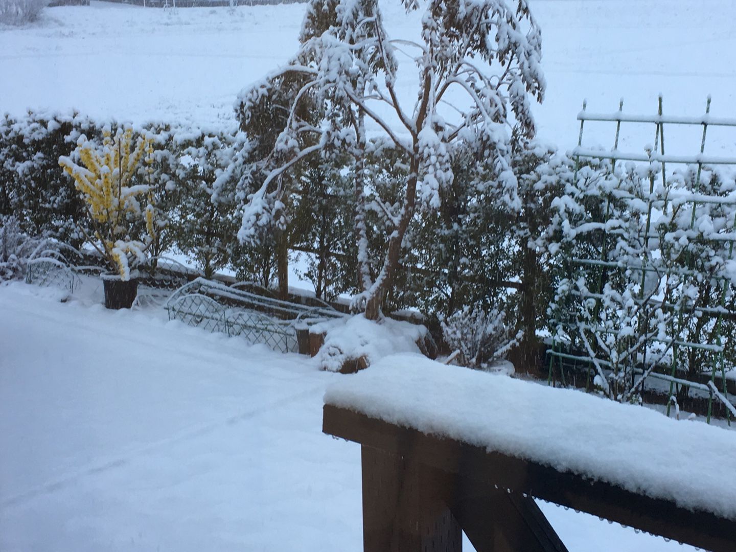 おはよーございます(=´∀`) カーテン開けたら雪景色の朝…でございました… 。 いやはや、参った!💦 しかも重〜い雪! 咲き始めた水仙も満開のレンギョウも雪まみれ… はぁ〜 昨日、頂きものの菊芋、発芽しちゃってたので植えたのになぁ〜 大丈夫かな〜 はぁ〜 ため息しか出ない! そんな朝。 はぁ〜
