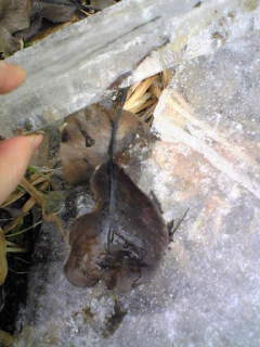 数日前の寒さで凍った池?ちっさぁ~い水溜め?に張った氷‥