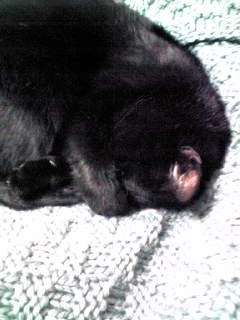 手荒な飼い主は、ぐわぁしと抱き上げ、オリーヴオイルをつけたコットンで刺激しました。←なんて事を‥(*_*)
