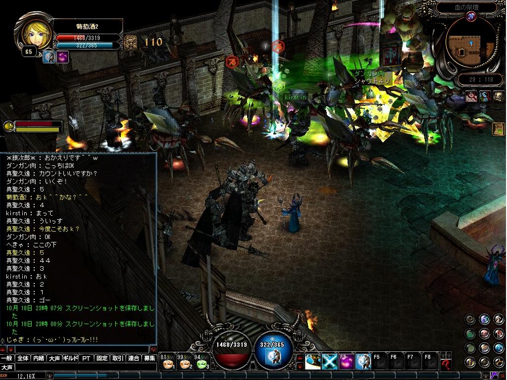 『鯖対抗!タイムトライアル!!ザ・血祭り♪ inラピス』いよいよ@2日ですねw葡萄酒1はLv68ヲリでシュレ・ヘイゲルの召喚とタイム計測で参加します^^☆追加事項・各チームメンバー外で1~2名を倉庫キャラ&POTキャラとして開始前に右 部屋奥2F階段に待機(メンバーに余裕が有れば)させて下さい。シュレ・ヘ イゲルのドロップアイテムが70%として70個発生します^^; 倉庫キャラ&POTキャラ(ポット代150M支給)にも兵書水1枚、忘却1 個を進呈します。☆当日22:00~の流れをもう一度確認します・集合 ラピ1鯖(鯖は当日変更有るかも?) 22:00 血の祭壇内踊り場・PT編成後、血の祭壇入り口外(神殿側)でフリポ又はゲスク登録をする・2PT12名で右部屋奥の2F階段で待機・シュレ・ヘイゲル100匹召喚、カウント187を確認・支援掛け等準備出来次第、開始(タイム計測スタート)・シュレ・ヘイゲル殲滅後、クエスト開始ドラ討伐で終了(タイム計測終了)・チーム内でアイテム分配、タイム公表・幹事さんより参加者に兵書水1枚、忘却1個を進呈・解散以上がイベントの流れ、所要時間1~2時間の予定