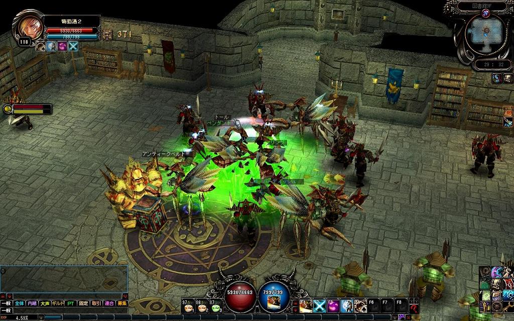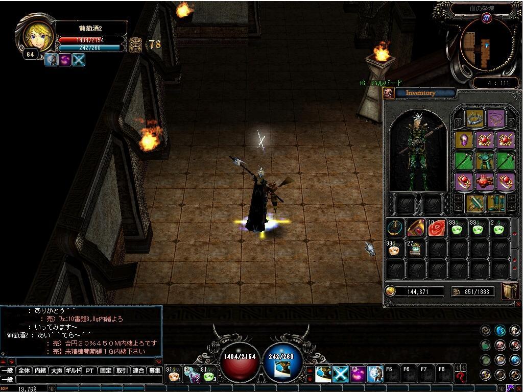 成長ドロップに限定して更新している為、ドロップが無い場合は更新出来ませんでした^^;昼に一度更新したんですが、SSが無修正で画面が大き過ぎて見づらかった為、修正して再度更新しました^^;最近はエクワールドでキャラ育成してた事も有り、ラピでの図書館狩りも休止中でっ・・・^^;まぁ~ラピで一番仲の良かったマジさんが休止か引退という状態なので・・・><;しかし、エクでヲリキャラがギルドに加入する事になり、加入後何人かのギルメンがこのブログの読者で参考にして成長を何本か拾ったと、声を掛けてもらい何だかとても嬉しくなりました^^成長への執着心も無くなり、モチベーションも低下してたところだったので、また頑張ってみようかなって思ってます^^エクでのキャラもすでに103歳、葡萄酒2より防具&アクセを移動してしまった為、ラピでの図書館狩りをずっと休止してました^^;しかぁ~~し葡萄酒2がヘボ防具と残アクセで図書館9Fまで行けるか?本日早朝試して見る事にしました。やはり経験値&アイテムドロップ1,2倍イベントなので、ラピ6・5・4鯖と一巡ずつ狩って見ました(2F~9F)。高位成長も拾って見たいのですが、エクキャラ(バル)ではマニタスで狩って見たんですが、未だに高位どころか成長さえ拾えてません^^;葡萄酒2での久しぶりの図書館!次は3鯖・・・。他の鯖と違って素材・ディバのドロップ、7・8Fでやけに爪とタルタノが落ちます、何となく胸騒ぎがwその出来事は9F狩りはじめて直ぐの事でした。突然!いきなり!トールの文字がw一瞬攻撃を止めてしまいましたw^^;実に4ヶ月振りの成長ドロップでした。2月17日 午前8時24分 ラピス 3鯖 図書館9Fちと一服です^^おまけ祝合付きでしたwいつものアイテム欄エクのバルはこんな感じ