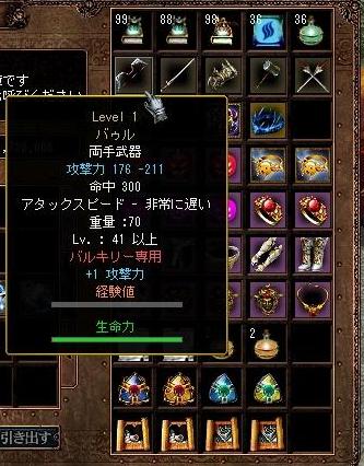 リア友に教えてもらって、一緒にサイズ縮小とアルバムへのUPを^^;ハァハァそれでも途中数枚消しちゃいました・・・><;@やはり画像が無いとイマイチ真実味が無かったのでw初めて拾う前にSS撮った記念の一枚です^^7日に拾ったバゥル^^ここからは、拾った後から全部アイテム欄を撮ったものです^^;貧乏性と言うか心配性で次階へ飛ばされたらと思うと、出たらすぐ拾っちゃってました・・・。残ってたのはこれだけでした@@;確かカーラも有ったはずでしたが消えました・・・ハァハァ画像の話はここまで!昨日は久しぶりに女ヲリ(ワンダー聖也)に課金してラピエンタ森を2鯖~5鯖まで39隔離しながら回って見ました^^と言っても南周りのコースが殆どですが。やはり過疎化が影響してるのか、オーラ付きも少なくゴミさえ少なかったですね^^;明日から本気モードで成長狩りしないと、ミニイベントに間に合わない@@;後2本・・・。シュレサモン本・ヘイゲルサモン本もまだ足りてませんし・・・。しかしシュレサモン本の合成失敗ばかりで、100冊の空本がもう無くなりそう^^;まぁ、最初から最後までうまく行くはずも無いですがねwハァハァ