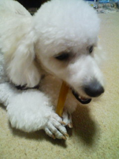 おもちゃのピンポン玉、ブラン気に入ったみたいでしばらく遊んでいたバキバキと音がしたので、飲み込んでも困るので取り上げて捨てた仕返しか?たたもうと思っていた洗濯物の中から、私のパンツを選び遊んでいた「シッ!」というと離すのに、離さない!終いには眠そうようやく没収いじけていますシロうるさそうです