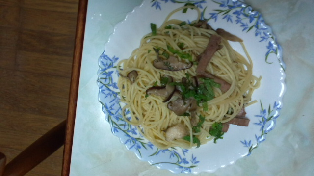 みゃ~おんさんのブログより、青じそが活性酸素を除去する成分を含んでいるとのこと早速ジャングル化した青じそ(殆ど穴ボコだらけ)の中から、選んで採取創作適当青じそスパゲティを作ってみました<材料 我が家の5人前> スパゲティ麺600g(1.7mm)醤油漬けニンニク6カケ・・・普通のニンニクでもOKスパム199g・・・ハムでもベーコンでも良いかも?きのこ適当に・・・今回は安かったので、しいたけ&舞茸各1P青じそ6枚・・・千切りにしました。オリーブオイル適当(大1)めんつゆ適当(大3)酒適当(大1)塩麹(大1)醤油・・・味を整える!適当<作り方> オリーブオイルで、ニンニクスライスしたものを炒め、きのこ&スパムどちらも適当に切ったものを一緒に炒め、めんつゆ&日本酒を適宜入れ少し煮詰めそこに茹でた麺を入れ、火を止めてから、塩麹と青じそを入れ混ぜるだけですとても、青じそがサッパリとして、食欲ないときでも食べられると思います適当ですいません(>_<)でも、お薦めです! こんなとこに~カボチャがいつの間にか、こんなところに・・・(ーー;)