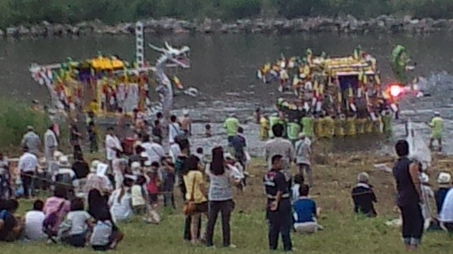 盛岡舟っこ流しは毎年 8 月 16 日に行われる送り盆の行事で, 各町内会等で作られた 飾り船を夕方火をつけて北上川に流します. 夜空に映える炎がきれいです. その後投げ 松明, 花火大会が行われます. 地元住民を中心に多くの方が訪れる行事です男集が、胸まで北上川につかり、舟を送りますご先祖様の、霊を精霊流しで送り、平和も願います最後は、地元花火師の気持ちのこもった花火を見てきました