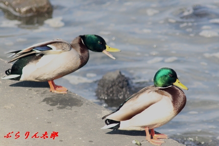 河口、池などさまざまなところにいますね~とっても身近な野鳥マガモも とりわけ珍しいこともないので特に写真にバシバシ収めることがなかった。 ごめんね、ごめんね~って感じで、悪気はなかったんですがね。 ここんところ ネタに乏しくなってきたこの頃大変ありがたい存在に見えてきやした。天気が良い 日に撮らせてもらいやした。日光を沢山浴びてあったまったのか飛び立ちました。 こっくり、こっくりしてたのでそっと近づき撮りましたがシャッターの音で起こし てしまったね~お邪魔しました~カモさんたちは夜行性?夜間帯に餌採りらしい。 某国営放送であってました、なので、昼は寝てるですかね? ♂のビロードに輝く羽毛はなんて綺麗なんじゃろ~ ♀はちょっと地味な茶色だけど落ちついた感じで・・・ しかし、カモ類は色んな変異があって識別が難しいな~最初はみんな同じに見える まだまだ修行がたりません。じっくり観察していけば覚えていくでしょうけど・・ 来年は覚えているでしょうかね~ 最近メモリー不足でなかなか新しい情報は入り づらくなってきたぶらりん太郎です。