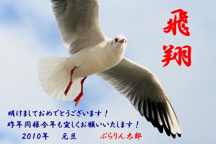 このサイトをいつも御覧頂いてる皆様へ 簡単ながら念頭のご挨拶にさせていただきます。 さて本日は今津干潟へお散歩がてらお出かけいたしやした。今日は時折 太陽が雲の合間から顔を覗かせるような晴れ模様でした。大潮とあって干潟が今日 はいつもより断然広い。野鳥たちも今日はのびのびと干潟で一日を楽しんでおる。 人馴れしたユリカモメが近くをよく旋回しながら飛び回っているので本日のモデル になってもらいやした。近くで見るとなかなか可愛らしい目をしてますね。 他のカモメよりは優しい感じがいたしやす。青い空に浮かぶ白い飛翔姿と赤い嘴に 赤い脚がとても印象に残りやした。 皆様にとって今年もよい年でありますように! PS:カモメールって暑中お見舞い用のはがきだっけ? ハッハッハッ!
