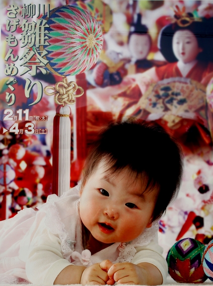 去年のお雛様巡りは白壁通りの町「吉井」へとぶらり旅に行きやしたが、今年 は柳川へ「さげもん」巡りのぶらり旅です。福岡からは三瀬越えのルートで出発! まずは、柳川で「山王さん」で通っているという「日吉神社」へと向かいました。 日吉神社は満福招来、繁昌、満足を授けるという神社です。 神殿脇には右と左にさげもんの飾りが施してありました。 日吉神社の横にはどんこ船の船着場があり、そこにも小さな雛飾りが施してあり やした。確か此処から流し雛を流すんじゃなかったかな? 川沿いに露店があるのは珍しい光景でしたね~焼ちくはが旨そうに転げておった。 川くだりは大人は¥1500らしい、約1時間どんこ船に揺られて川面を眺めると いう趣向もいいもんです。暖かくもなってきたことだし。 さて、お次は名勝「松濤園」がある「御花」へと向かいました。1697年に 立花公の別荘として建てられたものらしいです。仙台の松島を模して庭は造ったと 案内には書かれておりやした。結構広い敷地です。 柳川名物の土産屋も併設してあり、やたらと「うなぎの骨のおつまみ」が目につき パリポリと食べてしまいました。塩味が効いてるほうが旨かったね。 薄いやつは ちょっと生臭さが残っている感じで・・・ 「御花」の入り口に行く途中には、川くだりのお店やさげもんの土産店などが軒を 並べておりやした。 「御花」を出て水路に沿って行くとどんこ船の上に雛飾りのオブジェもあった。 そんな沖端の水路側へと脚を運ぶと沢山のうなぎやさんが軒を並べておりやした。 いい匂いが漂っております。お花屋さんの店先には雛飾りとさげもんが飾ってあり 快く撮影OKでしたので撮らせてもらいました。なんかすっごく豪華ですね~ それと、水の町の守り神、沖端水天宮から右に折れると夜になったら燈が灯る 「水上雛飾り」とゆうオブジェもありましたよ。 通りの奥には魚屋さんがあって、福岡では見られない産物がいっぱい売ってあり、 特に「わけのしんのす?」でしたかね?・・・イソギンチャクらしい・・・とかね 食べたことないですけど。珍味じゃろうね。 ぶらぶらも歩きぱなっしで疲れたのでこの辺で帰ってきました。 帰り際、またどんこ船に出会った。やっぱり柳川らしい風景でした。