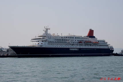 前回に引き続き長崎ぶらり旅であるが、旅の目的は世界最大の豪華客船を 見物するためじゃった。客船名はクィーンメリー2号 船籍は英国キュナード社。 フランスにて造船されました。 全長はなんと345m、全幅41m、高さは船底 からは72mもある世界最大の客船じゃ。大きさだけでなく速さにおいても約30 ノットを誇る。造船費用も8億ドルとな。めちゃ凄い!「客船データバンクより」 日本には一度来ているが、今回初めて長崎港に入港するとあって 絶対に実物を見たくて長崎までやって来やした。 車を走らせ出島付近に着たら、 見えてきましたよ~どかんと大きな山の様な船体が! 某テレビにて龍馬が初めて 黒船を見た時の様子が放映してありましたが、まさに腰を抜かすほどの威容じゃ。 では、周りにいる船、自動車などから想像しながらご覧下さい。 船体の横にある救難用の船でも観光バスほどの大きさがあります。 船尾からも撮ってみました。 全体像も撮ってみたかったので左舷側に回って撮りましたが、345mもあるので 回るのにも結構時間が掛かりましたね。 かっこいいですね~惚れ惚れする船体じゃ。こんな船で世界を回る人々が長崎の街 にあちらこちらにいます。羨ましい限りの一言です。 私もランタンフェスティバルを楽しみに行きましょう。ランタンフェスティバルを 夕刻まで楽しみ、一旦女神大橋近くでクィーンメリー2号を見送りに行きました。 出航時刻は18:00、女神大橋もライトアップされて綺麗です。 しばらくすると「ボォ~」と出航の合図で大きな船体が女神大橋をすりぬけて出て 来ました。入港時は3メートル程しか余裕がなかったと報じられていましたが・・ 静かにそ~と長崎港を出て横浜へと向かって行きやした。 見送りを済ませ、もう一度ランタン会場へのち稲佐山展望台で夜景を撮りました。 展望台は結構風が強くて寒かったです。 三脚を据えて撮りましたが風でぶれてか すっきりした写真は少なかったです。 今回の旅はひとり旅で思うように行動ができ、存分に長崎を楽しんできました。 唯一、わいわい円卓を囲み食事ができなかったのはちと残念でしたかね? 船内の様子は「ワールドクルーズネット:船で選ぶ:クィーンメリー2」で検索。 検索すると船内の超豪華な映像が楽しめます。