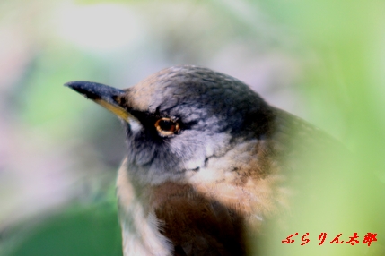 気温も少しずつ上がりだしたので、梅の開花が待ちどうしい今日この頃。 元岡の梅林に行ってみた。 昨年は小城の梅林でメジロと梅の良い写真が撮れた。 今年も撮ってみることにしているが、偵察してみるとまだちらほらと白い花がある 程度でメジロもまだ寄っていないみたいでしたね。満開の頃が楽しみじゃな。っと その時、梅林の垣根の下で何かコソコソと動くものが・・・ そ~っと覗いてみると、シロハラっていうツグミの仲間の鳥がいましたよ。 ちょっと地味な色合いの鳥ですが、ひとりぼっちでコソコソと餌探しの様でした。 帰って調べてみると、木の実やミミズなんかが好物とあるね。それと開けた場所に はあまり出ないとあるね。目立ちたがり屋じゃないってことだね。 梅の木の下のちょっと明るい所に出たので、撮らせてもらいやした。 地面での歩き方はスズメみたいに両足ホッピングが多いね、梅の木の下の方の枝に 停まりやした。 そしてまた地面に降りては枯葉の下なんかを嘴の先であせっては ミミズでも探しているんじゃろか? 2mぐらいの所でこっちを一度みましたが、何も動じない感じですね、鈍感なのか 度胸がすわっているのか?・・しばらく何を考えているのかぼ~っと動かない時も 一度もさえずりは聞かなかったな~静寂の中に餌をあせるカサカサッて音だけ! ちょっと変わった性格のようだね。でもこんな性格の人っていますよね。 ひとりぼっちでひっそりつつましく生きています!そんな印象を受けた鳥じゃな。