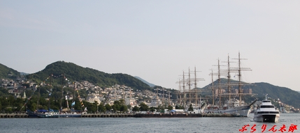 久方ぶりの更新になりました~ 5月半ばからパソコンの調子が悪く ま~とにかく動きません!データがいっぱいで重い!少し改良いたしまして、 何とか更新とあいなりました。 梅雨があけてのお楽しみにしていたのは、「長崎帆船まつり」!このイベントは 毎年春のイベントとして行われていたものですが、今年は夏ということで行ける ことになり嬉しい限りです。沢山写真も撮ってきました! 25日のお昼から福岡を出発、ETC1000円を使っての快適な 旅の始まりです。長崎入りしたのは、2時近くでしたか。 案の定、駐車場は いっぱいで、旭大橋近くの駐車場に車を置いてからあとは歩いて水辺の森公園 の会場入りでした。常盤埠頭に近くに来ると帆船が見えてきましたよ。 水辺の森公園まえの帆船は沢山の見物客でいっぱいでしたよ。日本丸ですね。 ステージ近くの帆船は海王丸です。全長110.09m、マストの高さは50m 大きな帆船ですね。常盤埠頭を端まで歩いていくと、松ヶ枝埠頭にロシアの帆船 が2艘係留してあります。 帆船見物をぶらぶらしていると、会場ステージでフラメンコのイベントが 始まりました。暑い会場で、帆船をバックにフラメンコ、なんか地中海?ってな 感じで異国情緒満載!いいね~ フラメンコが終わると、Harunaさんの花火カウントダウンライブの準備 が始まりました。Harunaさんライブは別号にて紹介します。 太陽が稲佐山へ落ちていくと、帆船のライトアップが始まりました。 少しは暑さも和らいできた感じ、でもまだ暑い!カキ氷を注文! Harunaさんの掛け声 「3,2,1 長崎!」を合図に花火の打ち上げが 始まりました。 結構大きな玉も揚がって港町長崎に響いて夏の夜を演出しております。 明日は帆船が長崎港を出航する日です。お見送りの為今日は早めの温泉入りを しますかね、行き先は稲佐山にありますアマンディさんへいきます。露天から 長崎の夜景を堪能しますかね~明日が楽しみ!