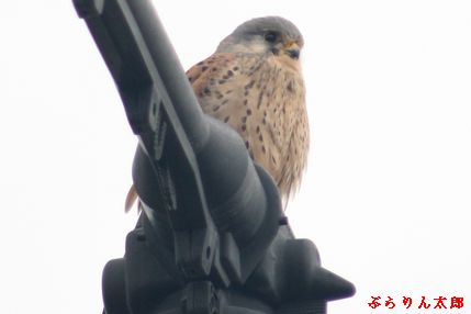 今年も11月頃から通勤途中ちょくちょく見かけるチョウゲンボウの♀ 去年いたやつは毎日に近いほど一定の電柱の上にいましたが、今年やって来た鳥は 結構広い範囲で動き回っているみたいじゃ。 休みに探しに行くときはいなかったり でなかなか写真が揃わずなかなかアップできなかったね。またいた日は天気が悪い 日が多かったこと。満足写真にならないことが多かったわけじゃ。これでも結構苦労し てるんですよ~ 12月に入って6日か7日の冬晴れの日に探しに行った時電柱の上から獲物 を探しているんでしょかね、右に左に見回しては獲物を見つけておった。まるで、 あっち向いてホイってしたくなったね。 寒いじゃろね羽毛を膨らませおりやす。 別な日に撮ったもんじゃが電線にとまって獲物を物色中を撮らせてもらいました。 細い電線に器用にとまって物色しております。何か見つけたようですよ。チョッと 背伸びして見ておりやす。全身写真と顔のアップ写真を頂やした。 いい顔しています!チョウゲンボウ! その後獲物を目掛けて飛んで行きやした。 ちょっと高いところでホバリングしておりやした。獲物はしとめることができたん でしょうかね?先日アップしている♂のチョウゲンボウとはあまり離れてはいない 所じゃよ。♂♀いっしょの写真なんか撮れれば最高じゃな~奇跡に近い事ですが、 以前ハヤブサの夫婦の写真をウェブ上で見たけどいい雰囲気じゃったよ。 ぶらりん太郎もあんな写真撮ってみたっいす!