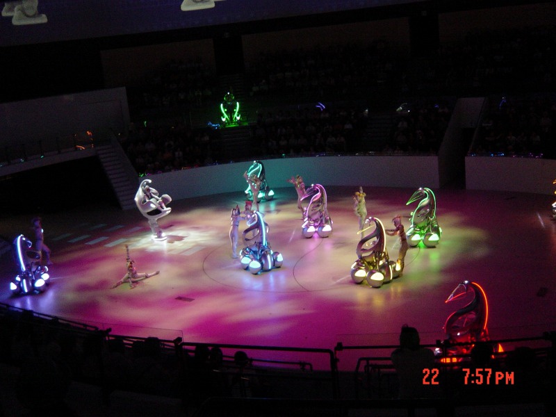 ロボット達が退場してから会場の上側の壁に映像が投射されます。