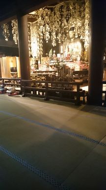 薄暗い中を阿弥陀堂に向かいます、山口県から来た信仰奉仕団の方々と一緒でした