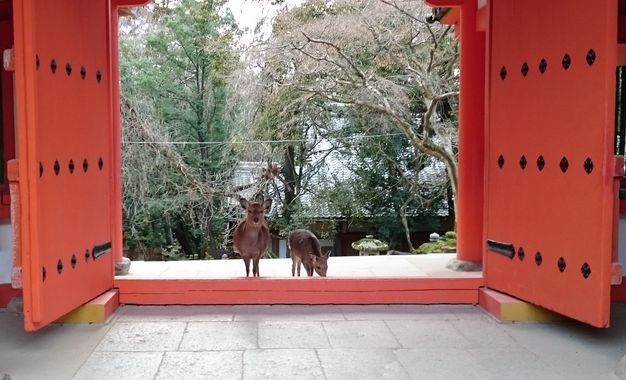 鹿も出入り自由な春日大社、でも本殿には入ってこないのかしら