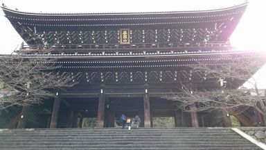知恩院の立派な三門は圧巻 石段の蹴上の高さが大きいので迫ってくる感じ