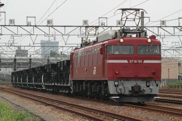 9月27日、前日の 水戸に 送り込み 釜が EF81 81ということで 早朝 6時19分着 ですがせめて 釜だけ じっくり 撮ることで 7時30分頃に家を出ました歩いて.8時前に 新小岩 信号場に 着きましたしかし、釜は 無い?…おなじみの 知り合い達 数人程度が 待ってました、すると、一旦 詰め所に 入れ替えして 8時10分頃に戻って来る とのことで 、そして、ローズピンクに 復元された EF81 81が出てきました!8時30分の 発車まで 撮り放題!車輪や ナンバープレートなどなど 細かい部分が身近で 撮れるので 撮り尽くしました!発車は なんとか 光線の良い側と 思い陸橋の 上から、しかし、左側から 撮るには架線が 車両に かかる部分があるため 残念、架線の隙間を 計算して なんとか 撮りました! ローズピンクEF81 81が 地元に 早速に登場とは 感激 物でした!今後は 水戸ホキ工臨などを 期待する今日この頃です。