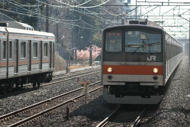 3月30日、都内の桜も 満開との 事でロングチキ工臨が 有る 夕方のこれだけ行きました で、家から 5分の場所の 桜並木通りを 通ると満開では なく 5部咲き?ともしかしたら 近くの 俯瞰場所も 同じ程度?と思いつつ. 案の定 宍戸錠と 桜はまだ 早かったそして 先に来る 成田エクスプレスが来ない先に DE10が来て ノロノロ運転そして 成田エクスプレス来て 初めての並び長い ロングチキが くねくねと通過して行きましたこれにて 帰りました今後の 運転と桜の絡みが気になる 今日この頃です。