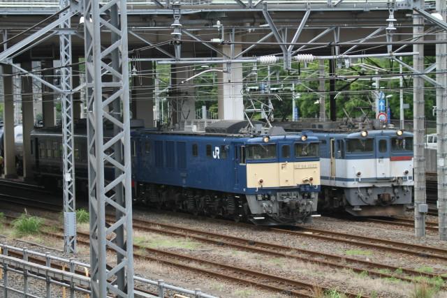 大宮に向かう途中 さいたま新都心で偶然見かけたので降りて 撮りましたEF65と並んで 5分程で発車 グッドタイミングでしたそして大宮に 20分程で入れ換えが始まりオヤが先頭 推進で 来ましたこの明るい場所での 入れ換えは 一瞬の撮影でしたこんな光景が見られるのも 次は5年後?また 今回は EF65 501が ホキ工臨に?かり出されたため EF64になったとか?そして翌朝新津に 向かいましたばんえつ物語の運転を 見守る 今日この頃です。