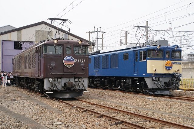 展示フェアも終了して 17時前に カシオペアが来るので展示回送の引き出しは諦めてカシオペアを撮り東武 金色スペーシアも来て停車ホ―ムは かなり離れど離合しましたそして 展示回送は 引き出しの停車待機から撮り入れ換え発車で 651系と並びそれからホ―ムを異動して本線に入るDD51 842牽引のEF64 37が本線ホ―ム入り17時半前に EF64 37牽引DD51 842で高崎に向けて発車..撮り終えて しもうさ号で 帰った次第でした6437も ブルーの国鉄色になるとの事で茶色の大宮展示は最後?なら貴重な記録を無駄にはならずして撮り尽くした 甲斐に笑みを浮かべる今日 この頃です。(^_^)v^^。平成30年. 2018年5月27日は この 楽天ブログ開設10周年になりましたこの書き込み時の トータルアクセス数1263039でした。これからも宜しくです(^_^)v^^。