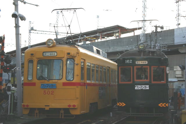 阪堺電車は 今回注目の 東京都電色と グリーンの黄色い帯.の車両や