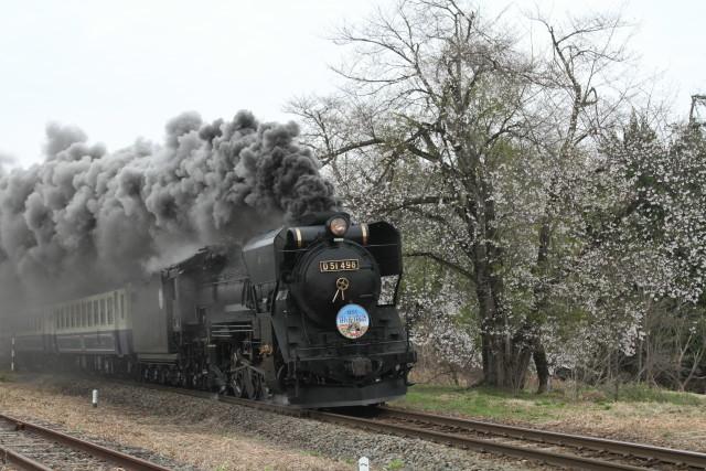 勢い良く 驀進する D51に 散り行く 桜と、手書きハート