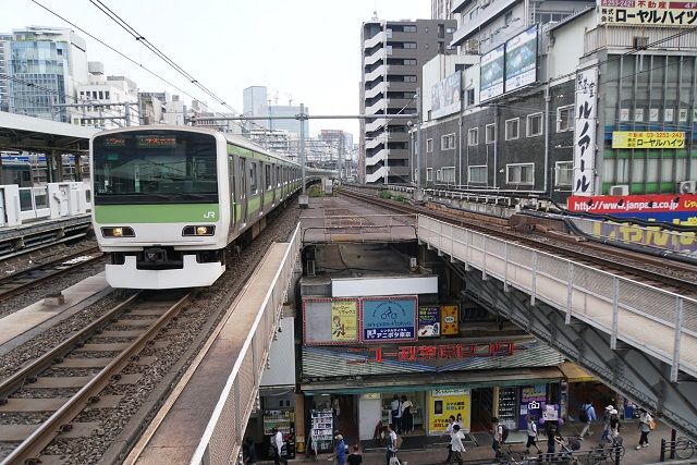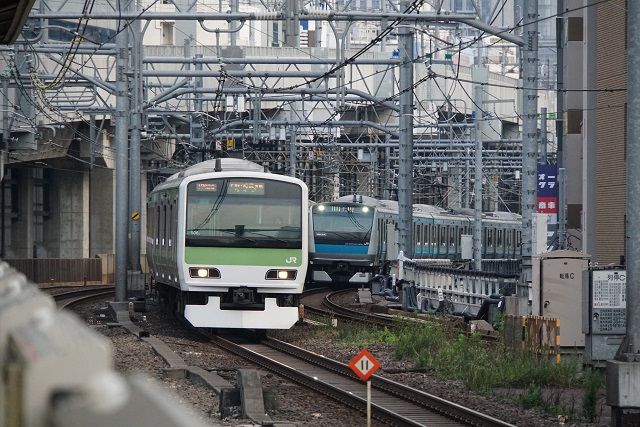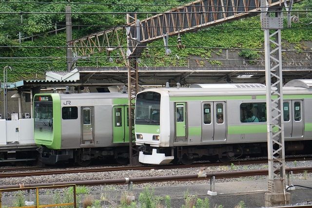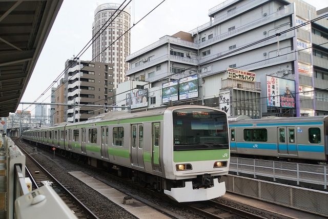 山手線E231系と昔の面影を残す光景を