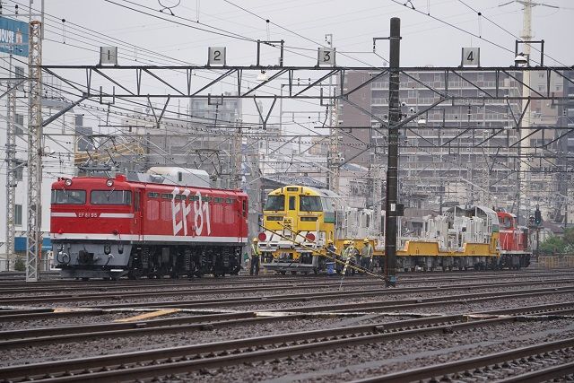 黒磯の先で 今度は 救援牽引のEF81 95が故障して