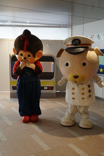 地元の モンチッチと駅長犬の ツーショットは