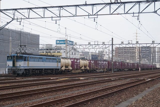 そして DE10 1704牽引 新津チキ工臨が到着して