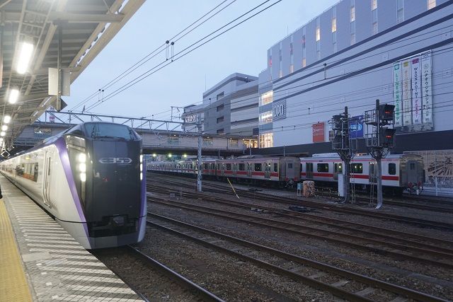 両方とも顔が無いので E353系と並んでも