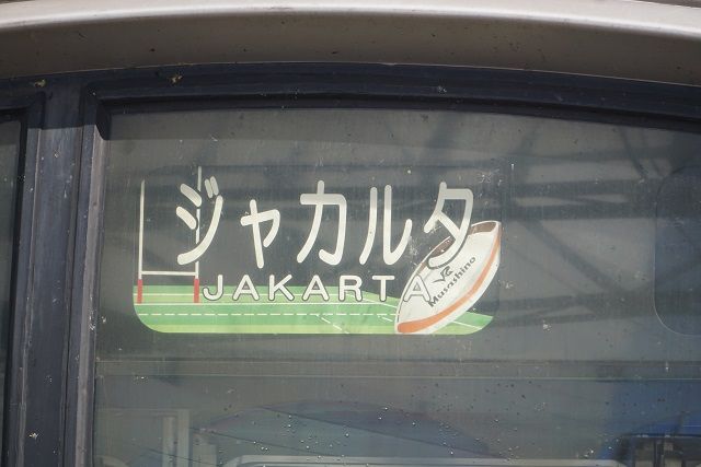 今回は ラグビーの表示ジャカルタ行き