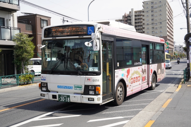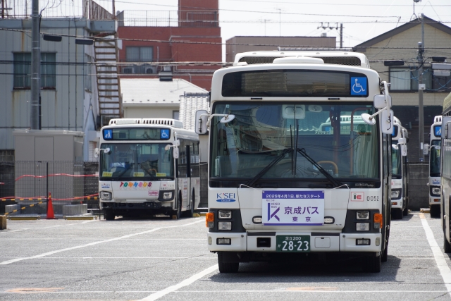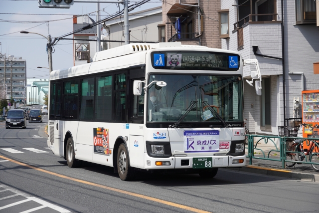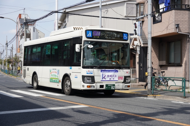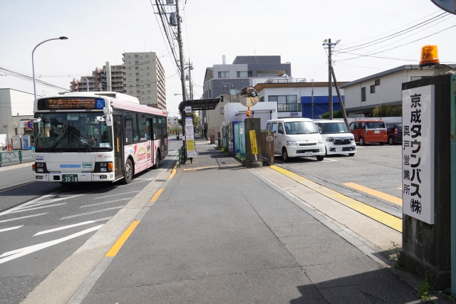 #京成立石 踏切カーブ 京成バスと離合 2021年04月14日