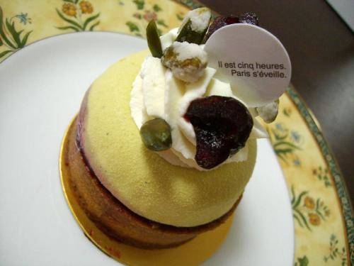 昨日の伊勢丹でマ・パティスリーに出店していた「パリセヴェイユ」で購入しました。ピスタチオのケーキまたピスタチオ~?と思うくらいどこのケーキ屋でも必ずチェックしてます。こちらはタルトです。ザクザクしたタルトでとても好みですただ、ピスタチオはもっと濃いほうがいいかな~。ロアジスオレンジ風味のホワイトチョコレートクリームを重ねたケーキです。とても柔らかで、滑らかな舌触りで好みの味でした<パリセヴェイユ>東京都目黒区自由が丘2-14-5 館山ビル1F TEL. 03-5731-3230営業時間: 10:00~20:00定休日: 無休個室: 無アクセス: 東横線・自由が丘駅徒歩5分