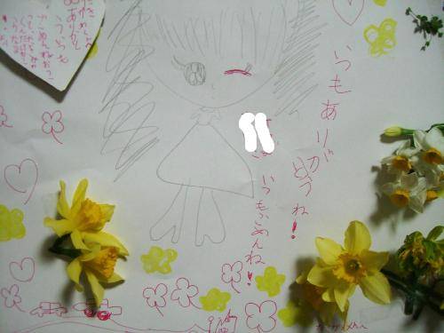 同級生の女の子からとっても大きな紙に書かれたお手紙?をいただきました。花は本物。数日前にいただいたので、今現在ほどよくドライフラワー。書かれた内容はなんとな~く謝罪文のような。女の子って可愛いなぁ。