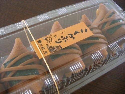 加賀展に行っただんな様がお土産を買ってきてくれました。「板屋」の「こもかぶり」実演販売で、すごく混んでいたので買ってみたらしいです。5個いり1050円和菓子なんだけど、なぜか海苔が巻いてあります。不思議・・・しっとりした生地の中は大きな栗と上品な甘さの餡で、緑茶にぴったりなお味でした。